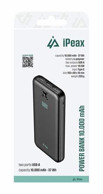 iPEAX Power banka 10000 mAh, 10,5W, 2x USB-A černá