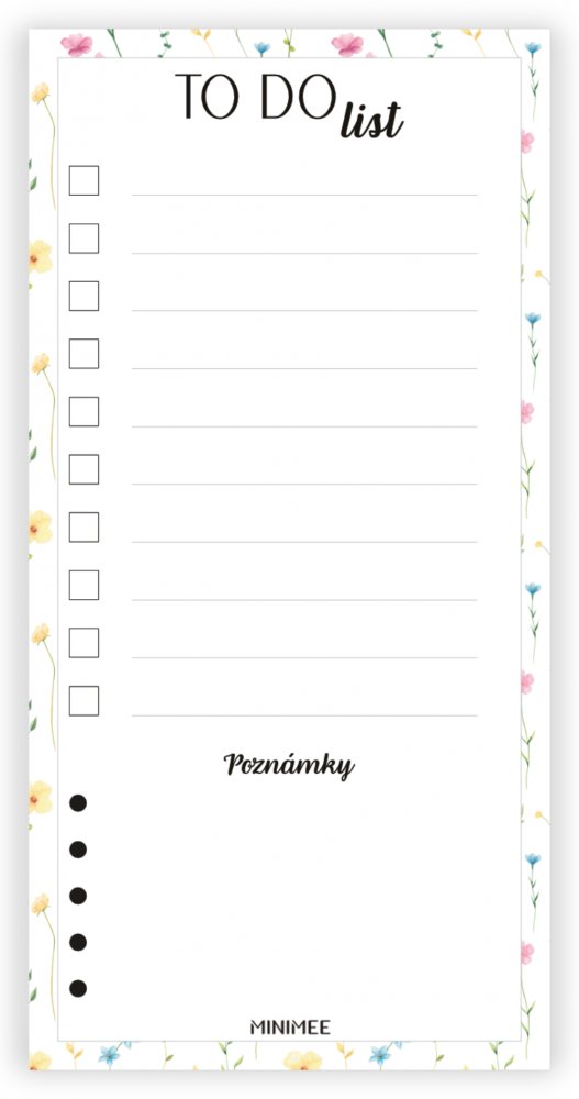 Udržte si prehľad o svojich úlohách štýlovo a prakticky! Tento trhací TO DO LIST s motívom lúčneho kvietia je skvelým pomocníkom pre organizáciu každodenných povinností i poznámok.