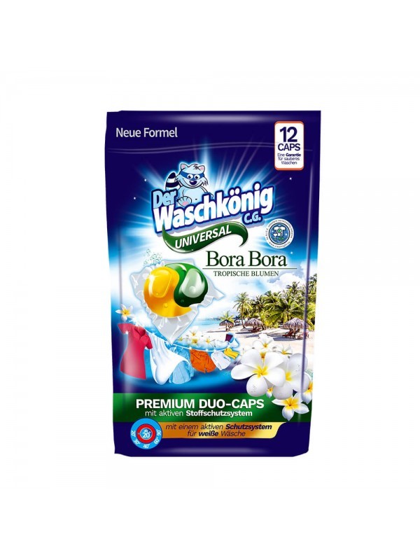 Perfektní mycí kapsle Der Waschkönig!Kapsule DUOCAPS díky své dvoukomorové struktuře mohou s dvojitou pevností odstranit všechny nečistoty, i ty nejtěžší!Výrobek je určen k praní barevných oděvů, vyznačuje se jedinečnou vůní tropických květin.