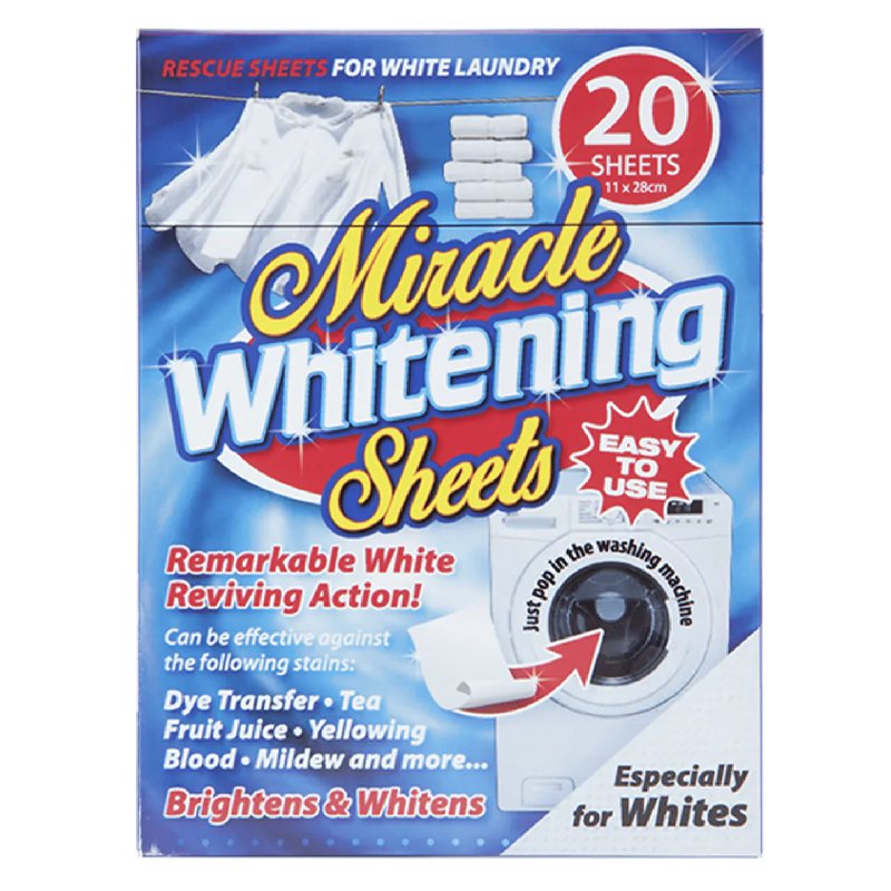Zázračné bělící ubrousky na praní - 20ks skvělé zázračné ubrousky pro bělení a odstranění skvrn z bílého textilu. Odstraňují skvrny od čaje, džusu, krve a dalších barviv. Jednoduché použití přímo při praní. Vhoďte ubrousek do bubnu pračky a spušťte svůj oblíbený prací program. Společně s ubrousky...