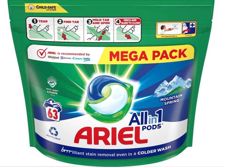 Gelové kapsle Ariel Mounting Spring skvěle odstraňují skvrny a chrání barvy Oblečení za nechává dokonale čisté a svěžíMají dlouhotrvající vůniJsou navrženy pro praní při nižších teplotách a přinášejí brilantní odstranění skvrn Velké a výhodné balení, které obsahuje 63 kapslí Vyperte...