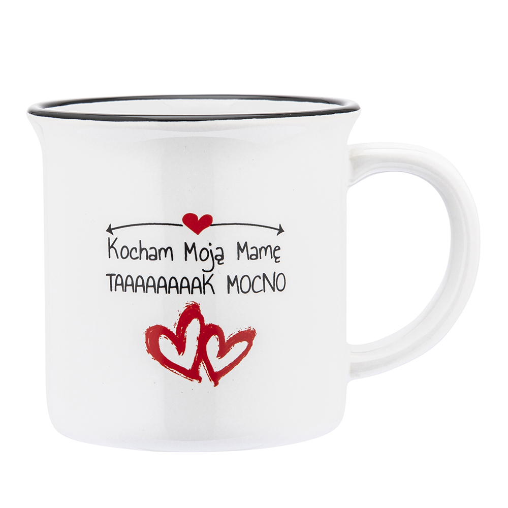 KUBEK PORCELITOWY Z WYWINIĘTYM RANTEM 320 ML DEK. KOCHAM MAMĘ