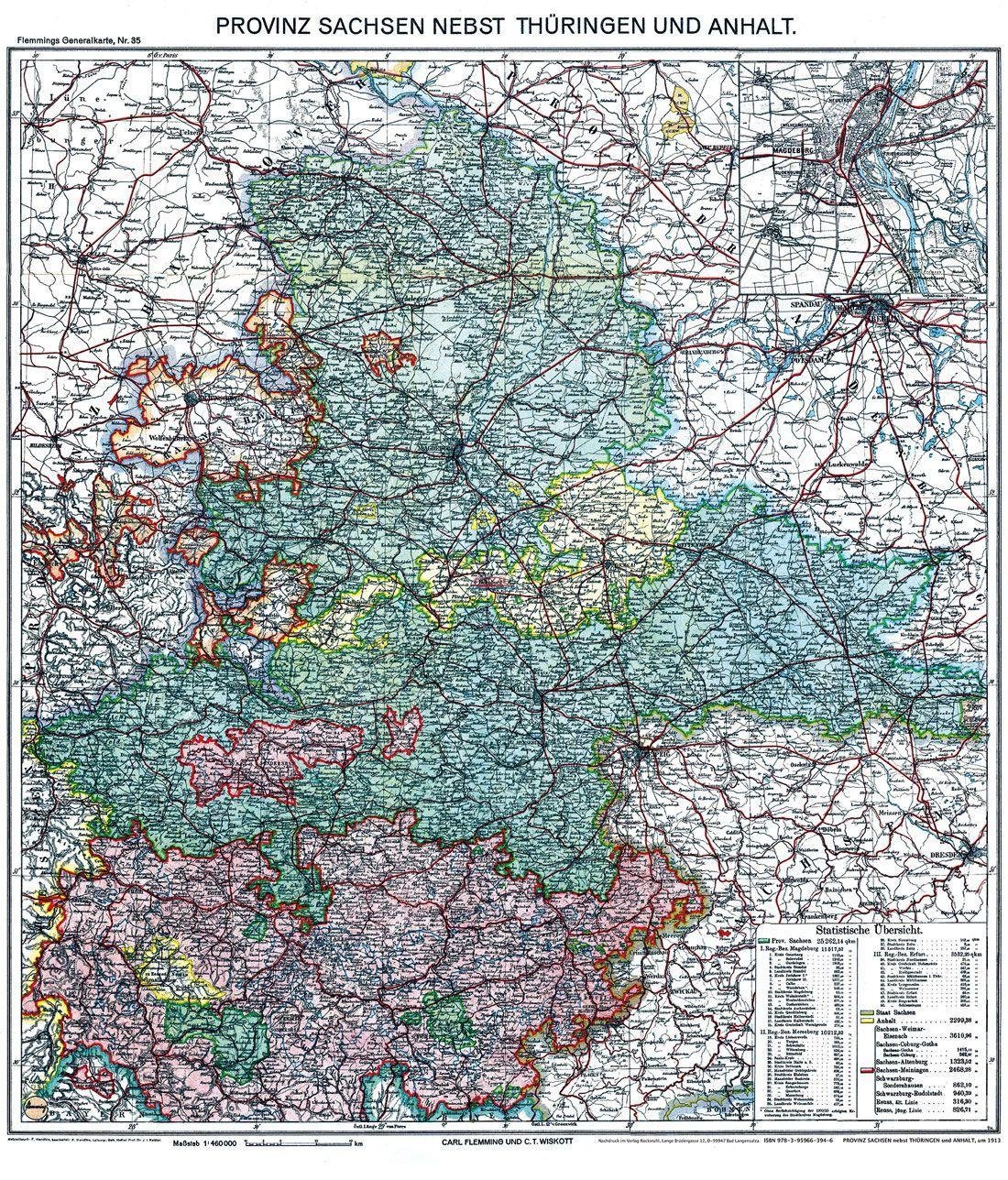 Historische Karte: Provinz SACHSEN nebst Thüringen und Anhalt im Deutschen Reich - um 1913 [gerollt] (německy)