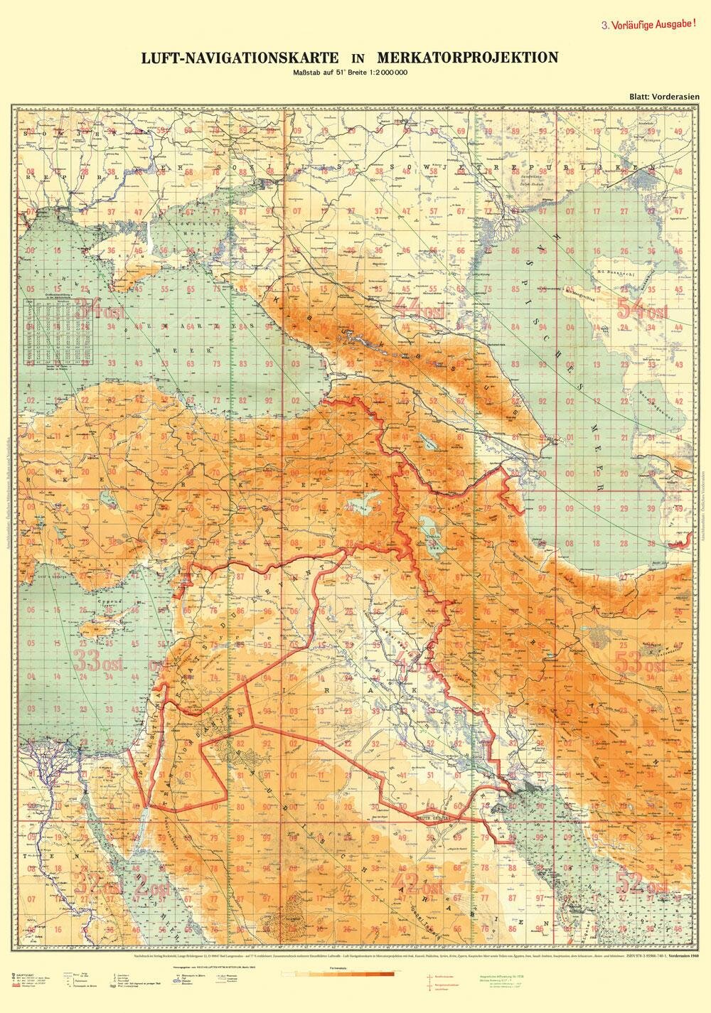 LUFT-NAVIGATIONSKARTE: Vorderasien 1940 (Plano) (německy)