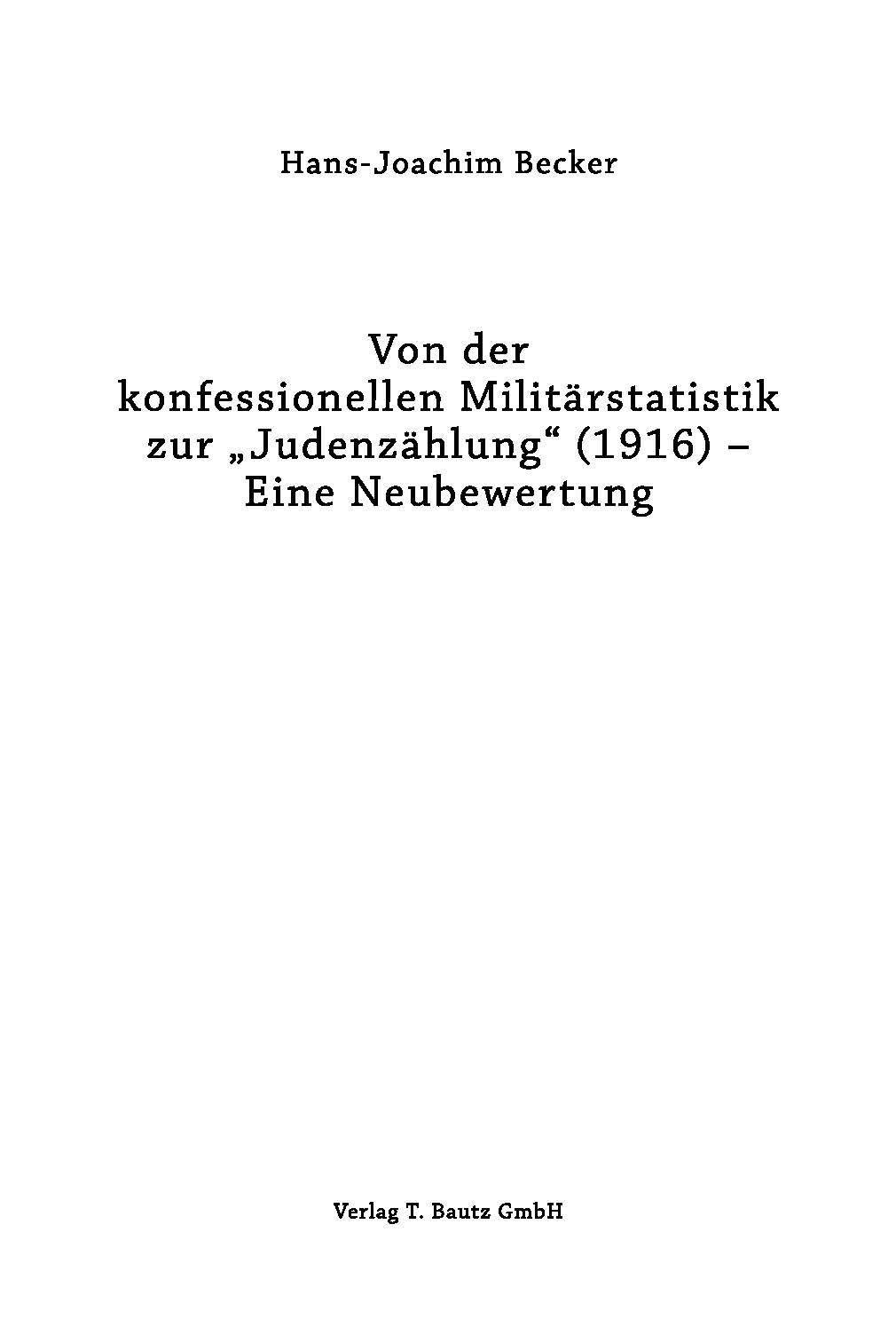Von der konfessionellen Militärstatistik zur Judenzählung (1916) - Eine Neubewertung (německy)