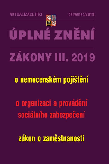AKTUALIZACE 2019 III/3 - Zákon o nemocenském pojištění, Zákon o organizaci a provádění sociálního zabezpečení, Zákon o zaměstnanosti (česky)