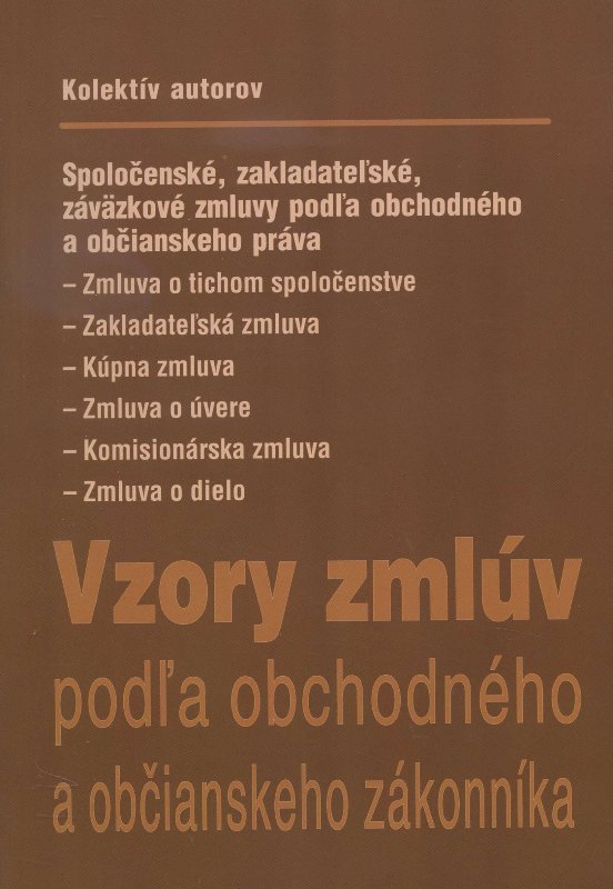Spoločenské, zakladateľské, záväzkové zmluvy pod obchodného a občianskeho práva - kúpna zmluva, zmluva o úvere, komisionárska zmluva, zmluva o dielo, zmluva o tichom spoločenstve,... prečítať celé