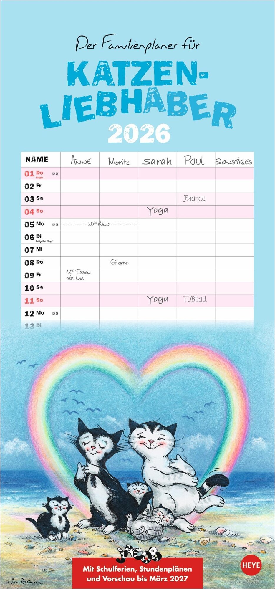 Jacob Familienplaner für Katzenliebhaber 2026 (německy)
