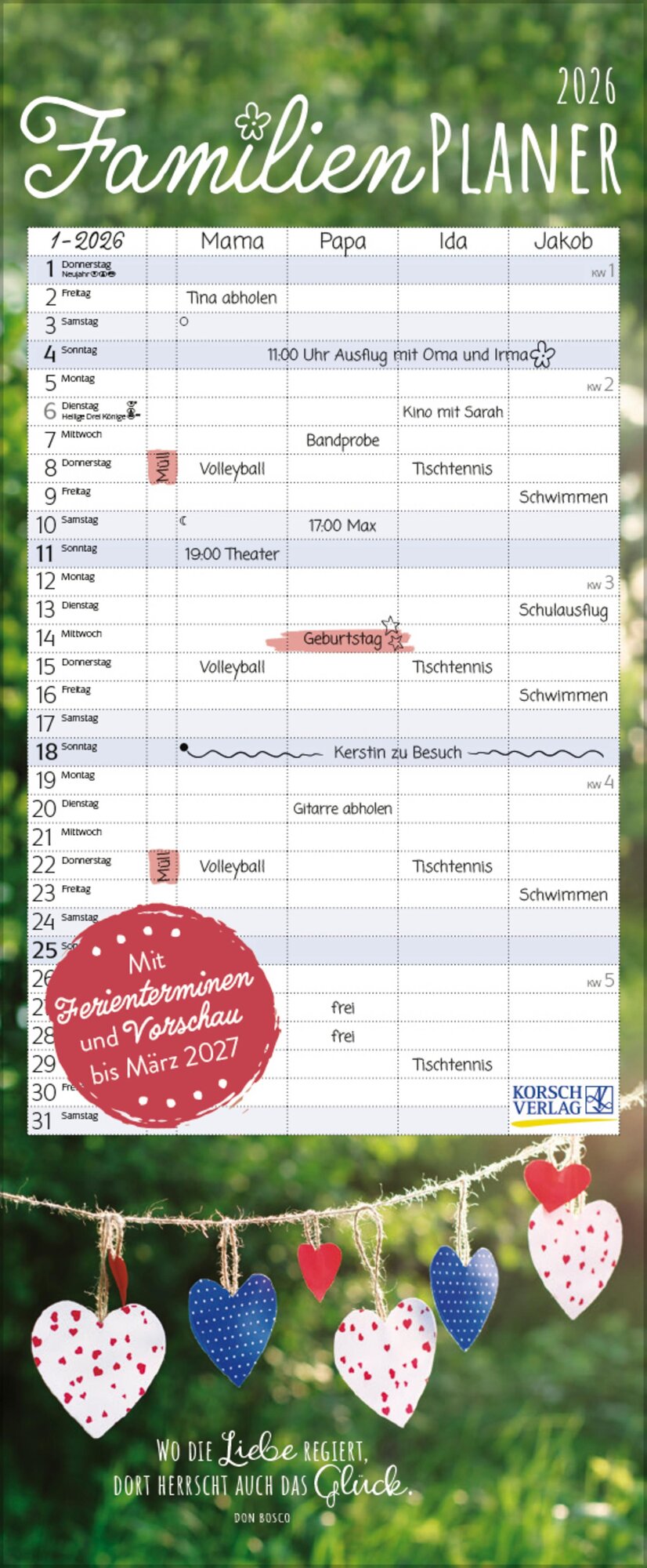 Familienplaner mit Fotos und Zitaten 2026 (německy)