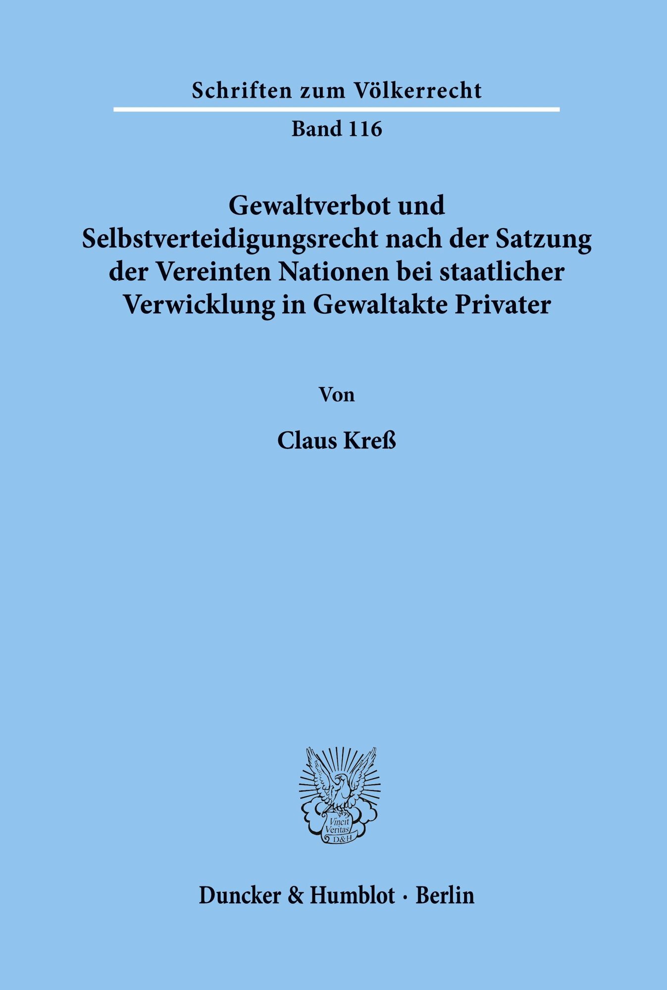 Gewaltverbot und Selbstverteidigungsrecht nach der Satzung der Vereinten Nationen bei staatlicher Verwicklung in Gewaltakte Priv (německy)