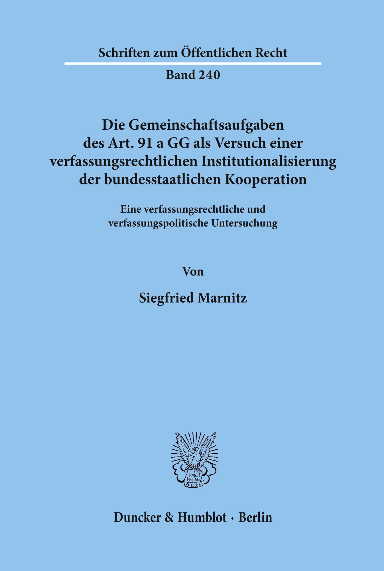 Die Gemeinschaftsaufgaben des Art. 91 a GG als Versuch einer verfassungsrechtlichen Institutionalisierung der bundesstaatlichen (německy)