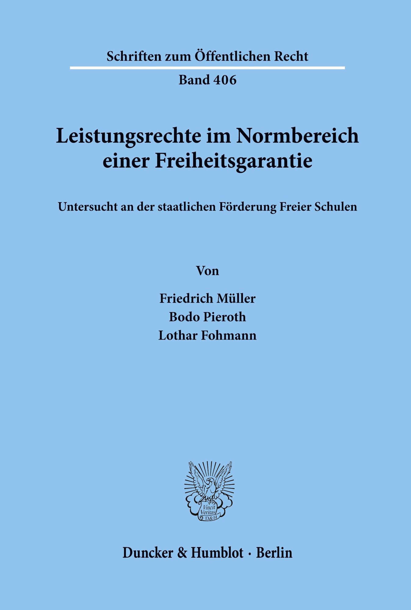 Leistungsrechte im Normbereich einer Freiheitsgarantie, untersucht an der staatlichen Förderung Freier Schulen. (německy)