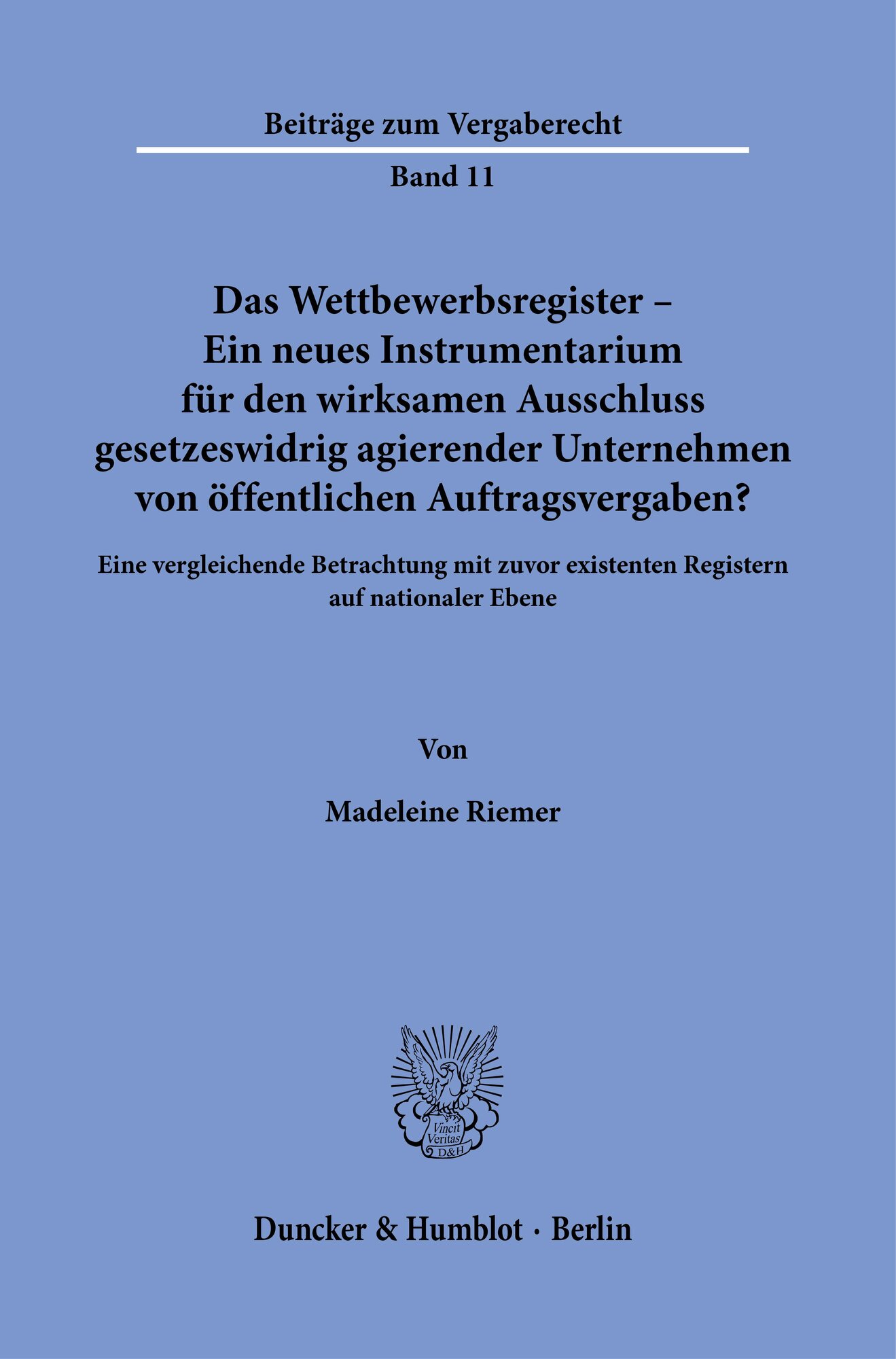 Das Wettbewerbsregister - Ein neues Instrumentarium für den wirksamen Ausschluss gesetzeswidrig agierender Unternehmen von öffen (německy)