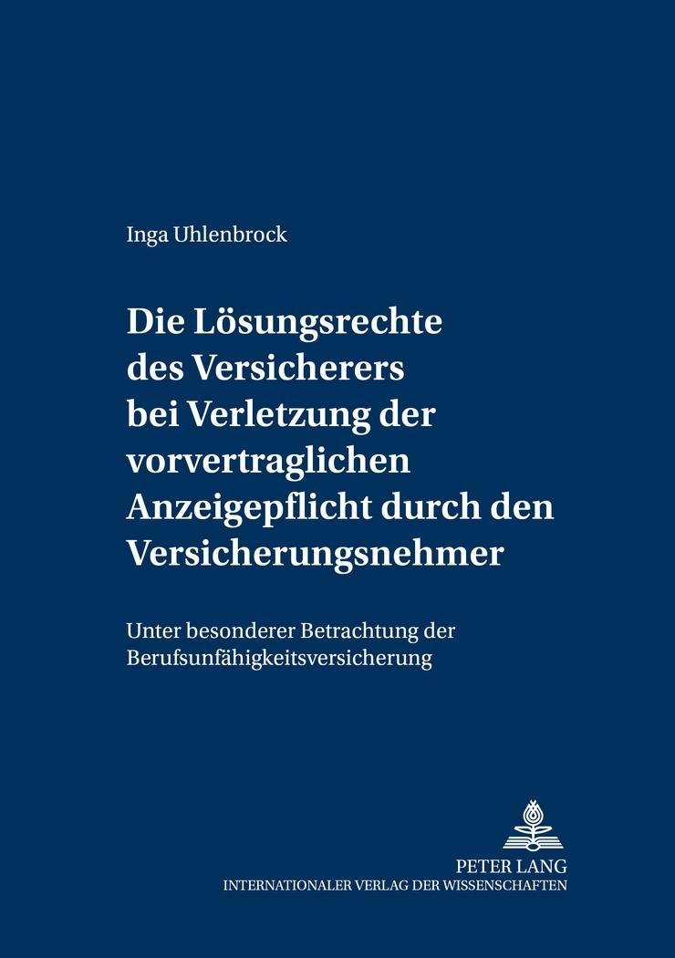 Die Lösungsrechte des Versicherers bei Verletzung der vorvertraglichen Anzeigepflicht durch den Versicherungsnehmer (německy)