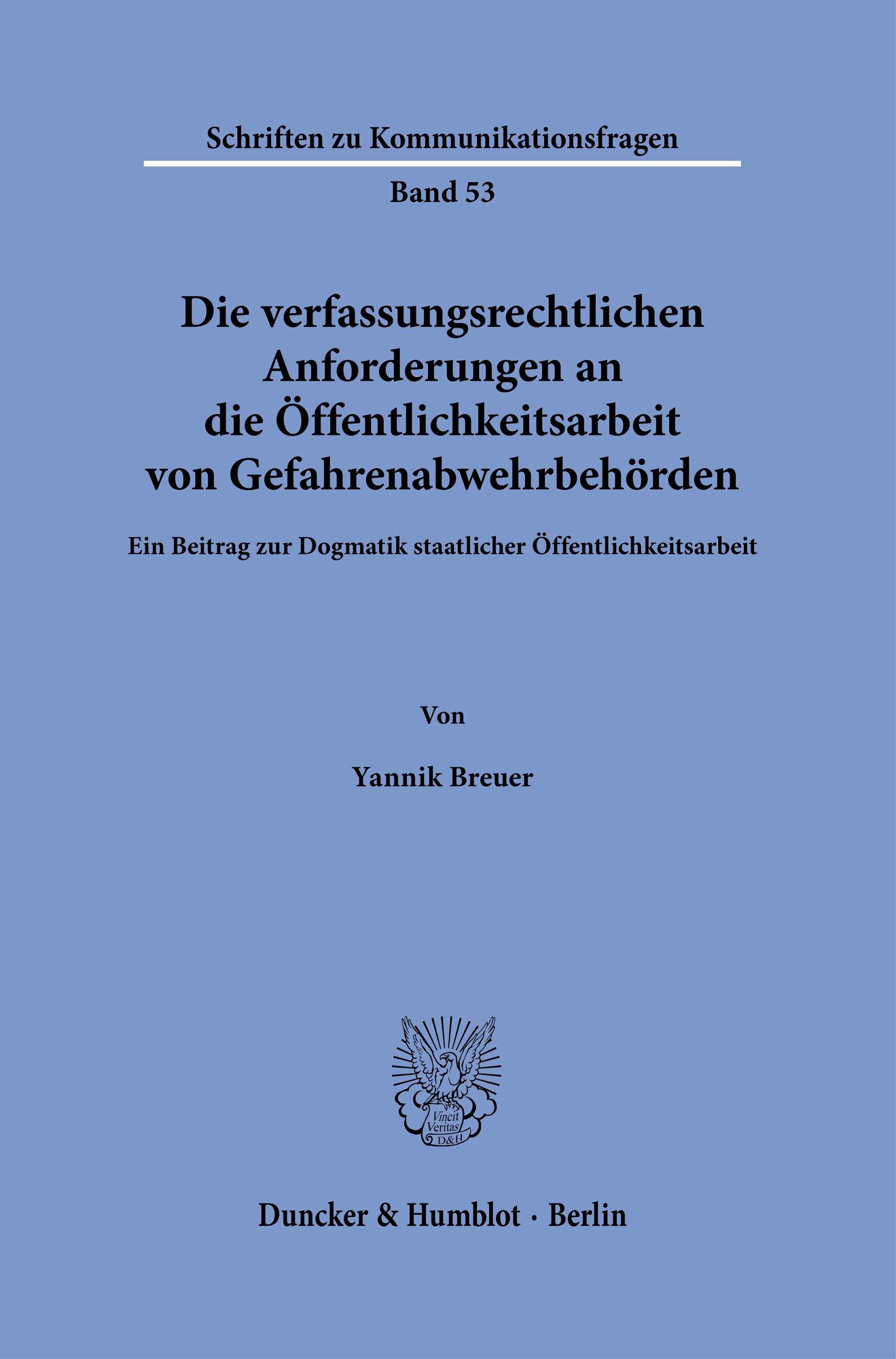 Die verfassungsrechtlichen Anforderungen an die Öffentlichkeitsarbeit von Gefahrenabwehrbehörden (německy)