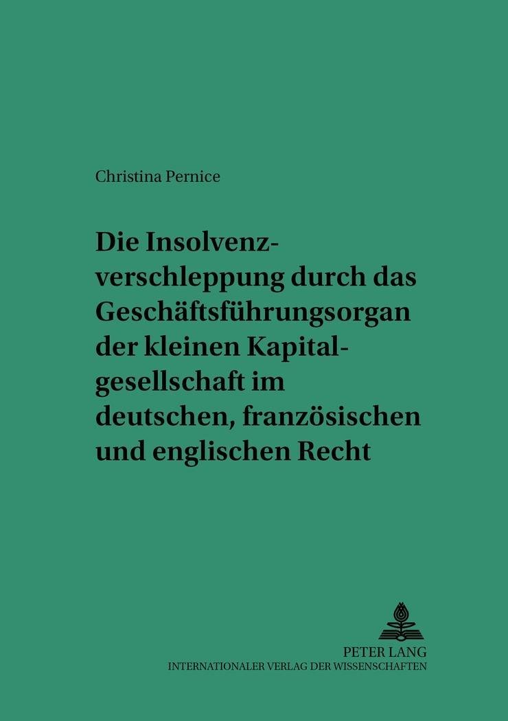 Die Insolvenzverschleppung durch das Geschäftsführungsorgan der kleinen Kapitalgesellschaft im deutschen, französischen und engl (německy)