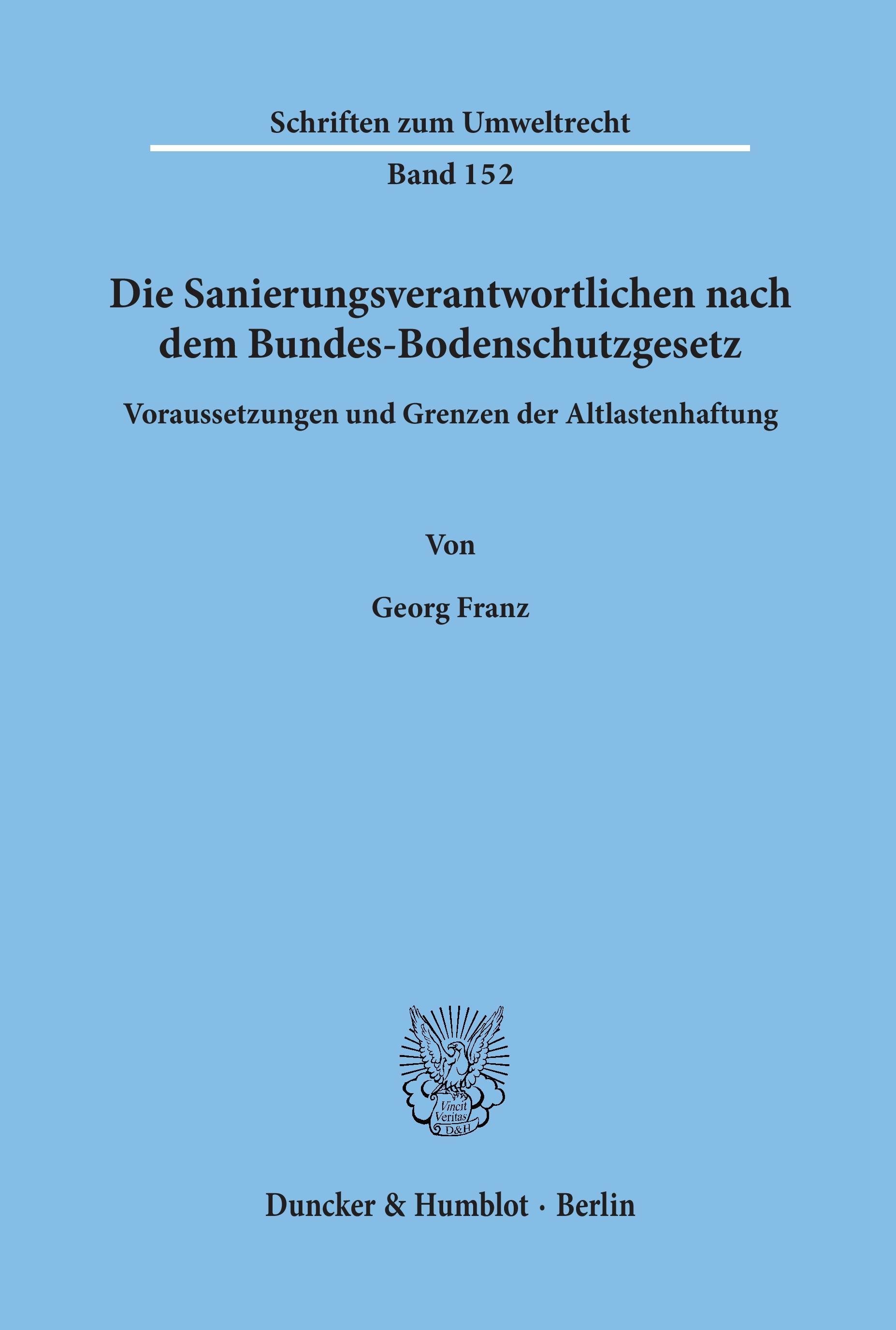 Die Sanierungsverantwortlichen nach dem Bundes-Bodenschutzgesetz (německy)
