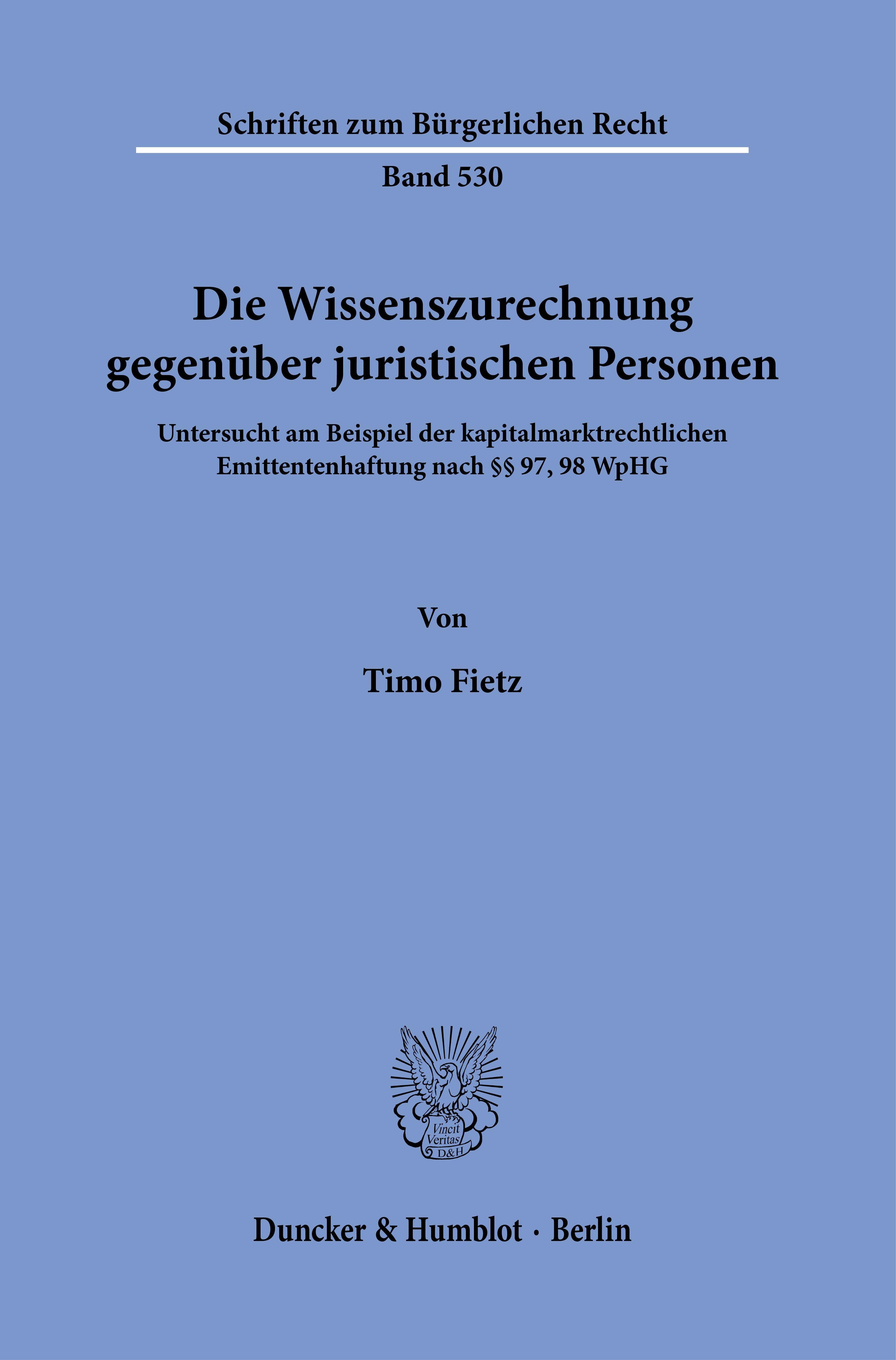 Die Wissenszurechnung gegenüber juristischen Personen (německy)