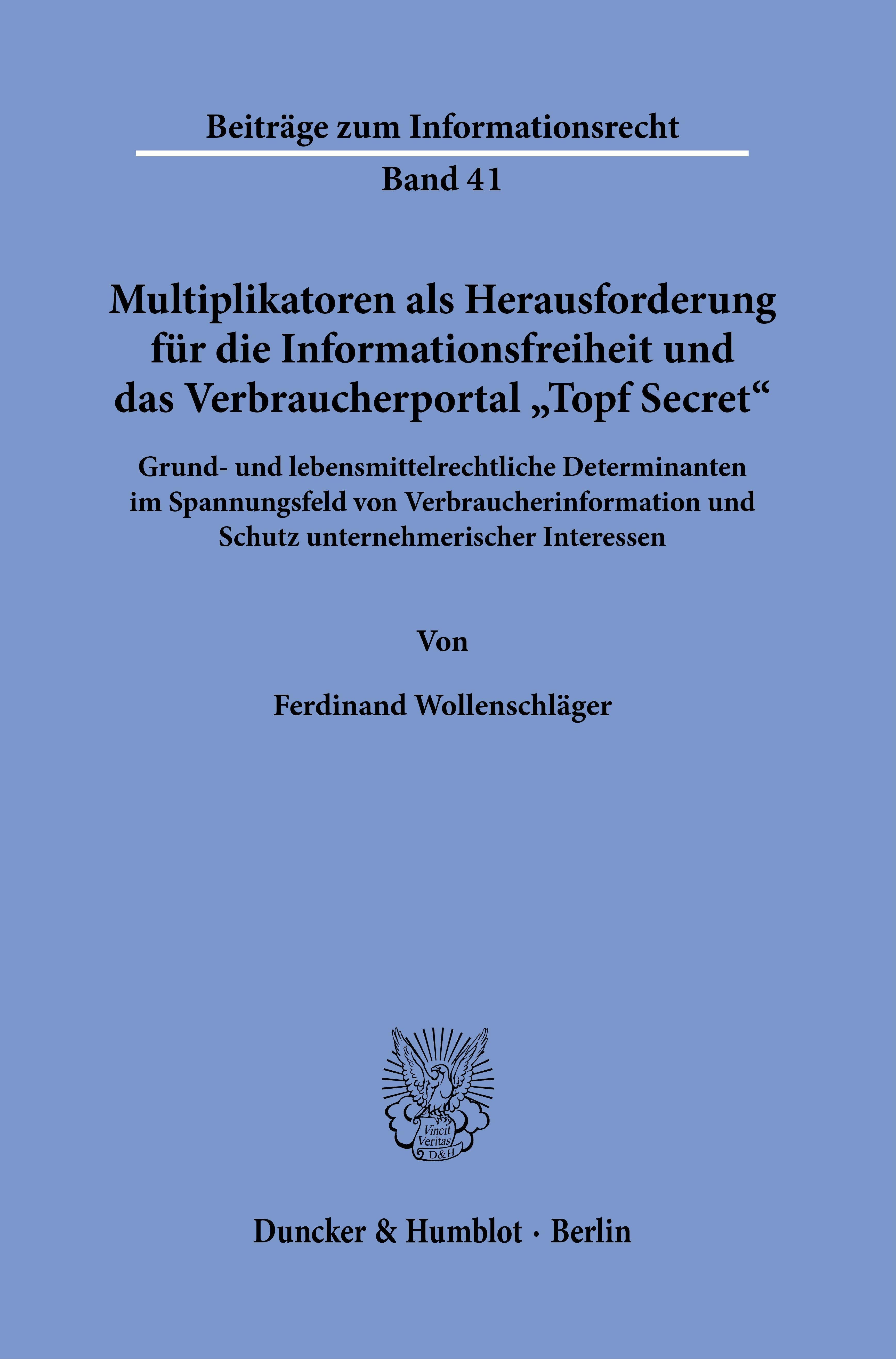 Multiplikatoren als Herausforderung für die Informationsfreiheit und das Verbraucherportal »Topf Secret«. (německy)