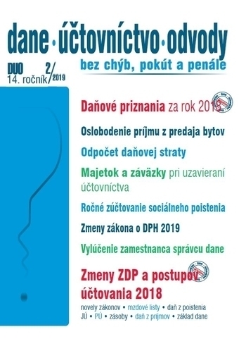 Publikácia obsahuje: Daňové priznania za rok 2018 + otázky z praxe, Zemny v zákone o dani z príjmov a v účtovných postupoch v roku 2018, Podmienky pre oslobodenia príjmu z predaja bytov od dane, Odpočet daňovej straty PO, Bezodplatné plnenia a plnenia uskutočnené na iný účel ako podnikanie v...
