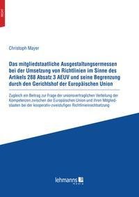 Das mitgliedstaatliche Ausgestaltungsermessen bei der Umsetzung von Richtlinien im Sinne des Artikels 288 Absatz 3 AEUV und sein (německy)