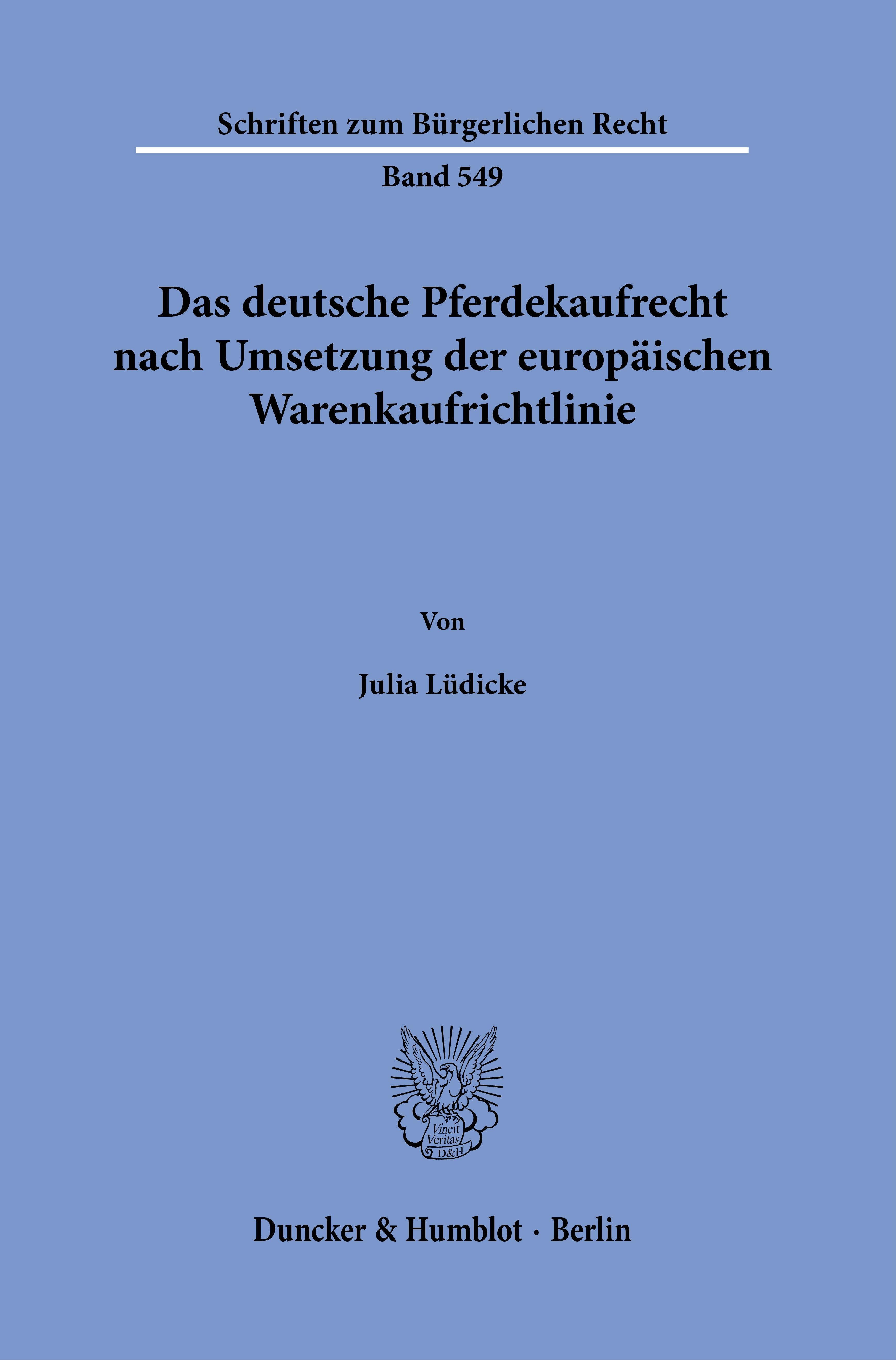 Das deutsche Pferdekaufrecht nach Umsetzung der europäischen Warenkaufrichtlinie. (německy)