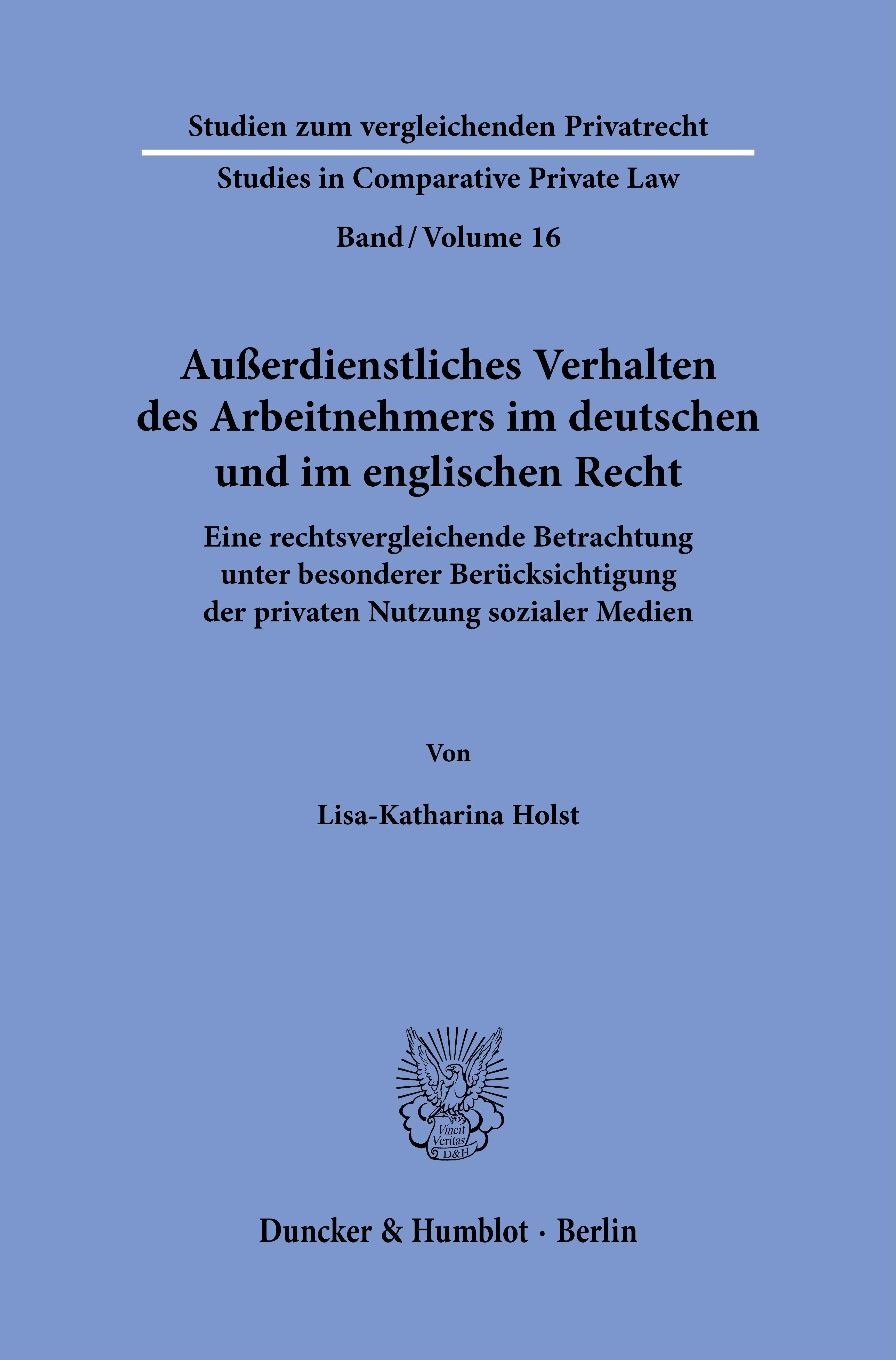 Außerdienstliches Verhalten des Arbeitnehmers im deutschen und im englischen Recht. (německy)
