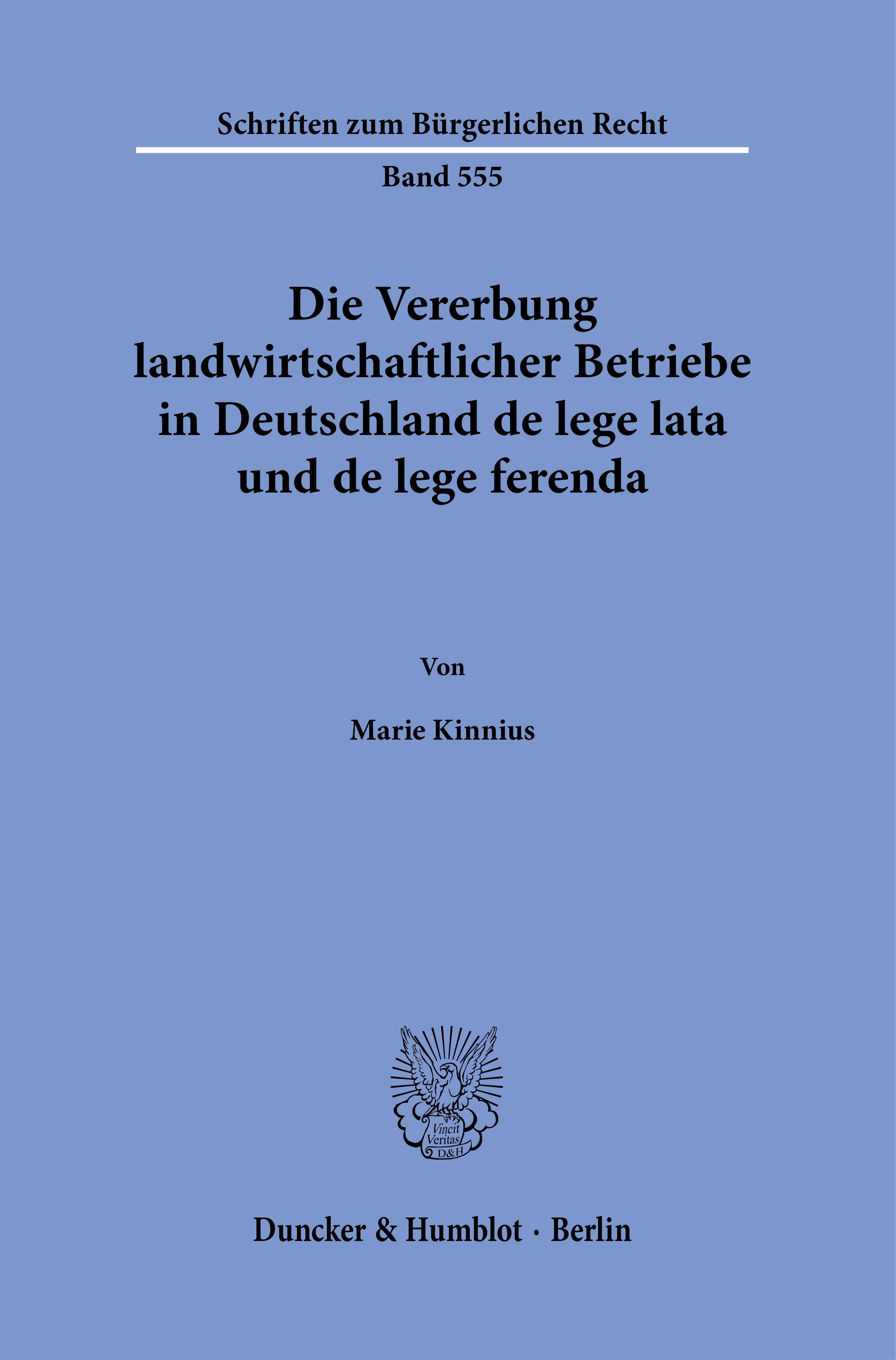 Die Vererbung landwirtschaftlicher Betriebe in Deutschland de lege lata und de lege ferenda. (německy)