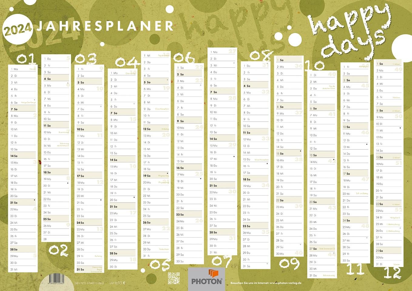 Jahresplaner "HAPPY DAYS" Kalender 2024 (německy)