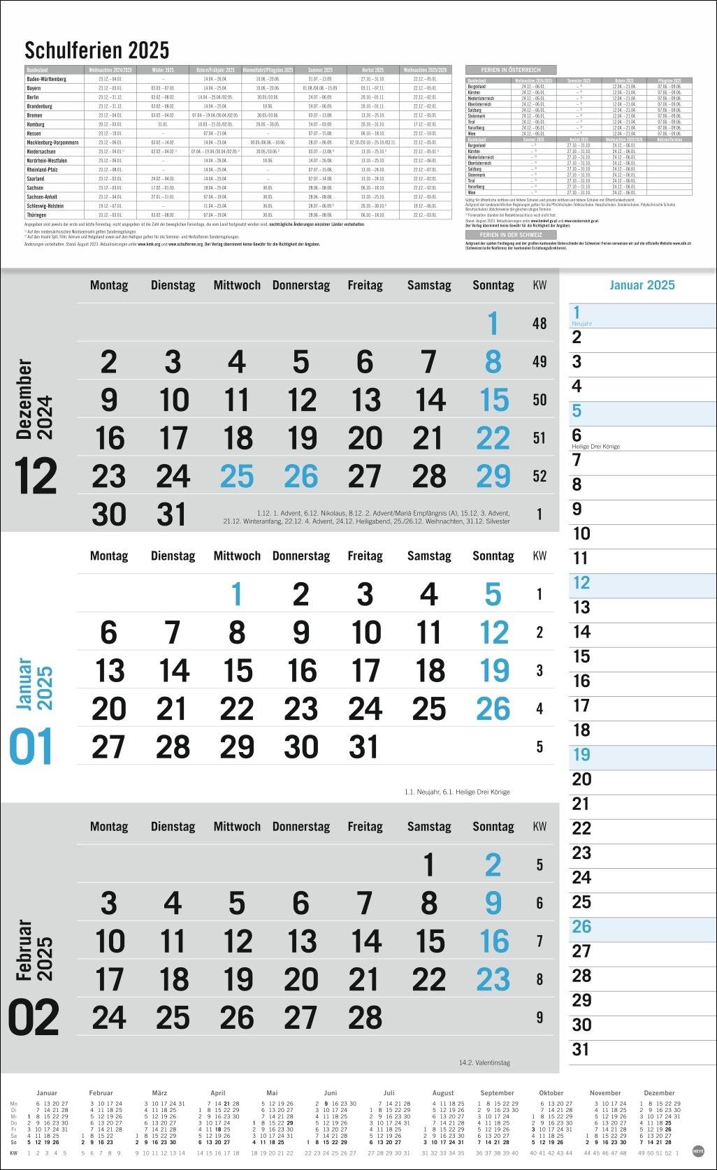 3-Monats-Planer 2025 mit Klappfälzel mit Ferienterminen. (německy)