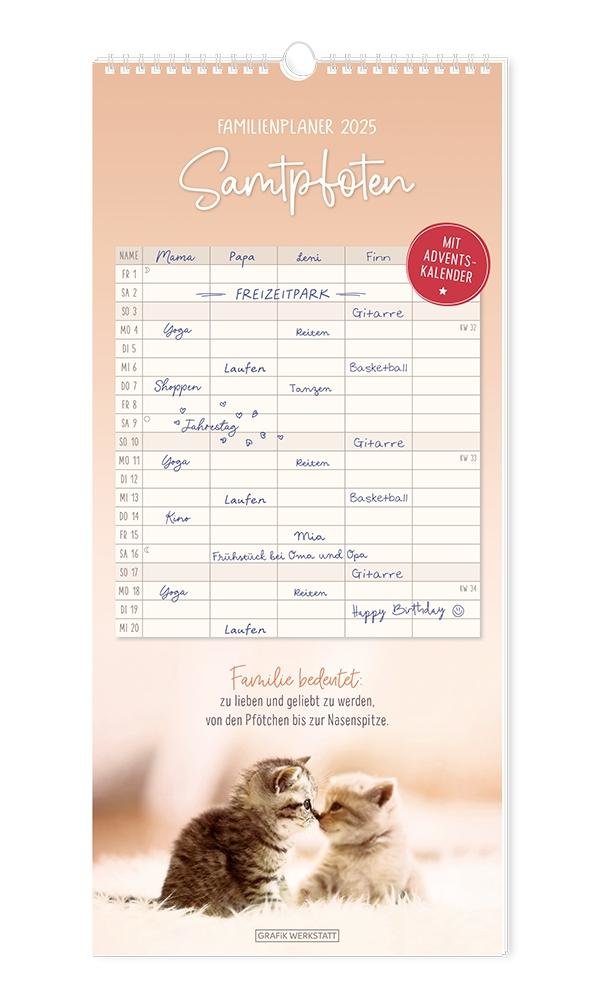 Familienplaner 2025 Samtpfoten (německy)