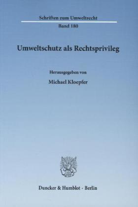 Michael Kloepfer§Einführung§§Michael Rodi§Das Rechtsprivileg als Steuerungsmittel im Umweltschutz?§§Erik Gawel§Umweltschutz als Abgabenprivileg§§Martin Eifert§Umweltschutz durch Benutzungsvorteile§§Claudio Franzius§Preisprivilegien und Umweltsiegel im Dienste des Umweltschutzes§§Felix...