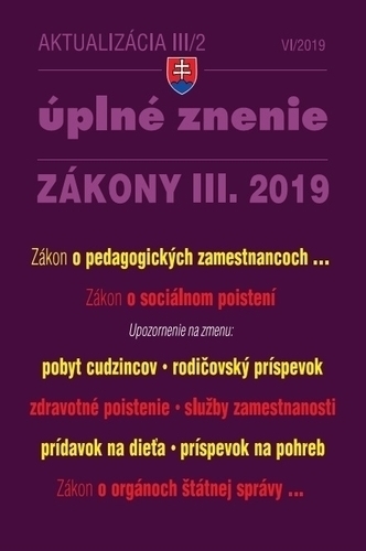 Zákon č. 461/2003 Z. z. o sociálnom poistení; Zákon č. 138/2019 Z. z. o pedagogických zamestnancoch a odborných zamestnancoch; Zákon č. 404/2011 Z. z. o pobyte cudzincov a o zmene a doplnení niektorých zákonov; Zákon č. 571/2009 Z. z. o rodičovskom príspevku; Zákon č. 580/2004 Z. z. o zdravotnom...