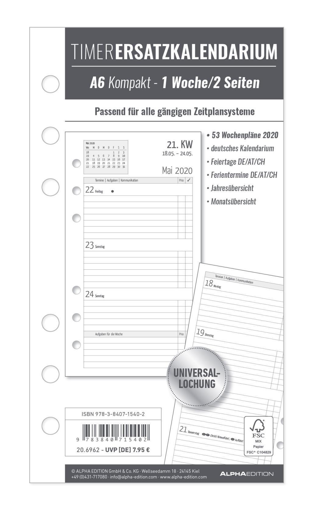 Timer Ersatzkalendarium A6 Kompakt 2020 (německy)