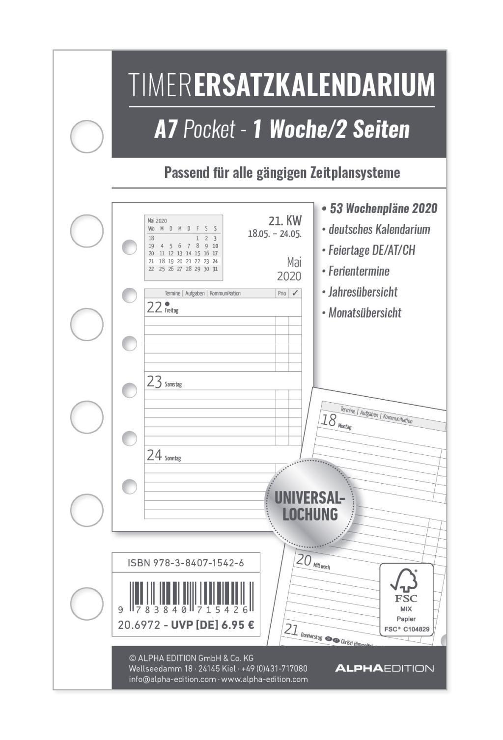 Timer Ersatzkalendarium A7 Pocket 2020 (německy)