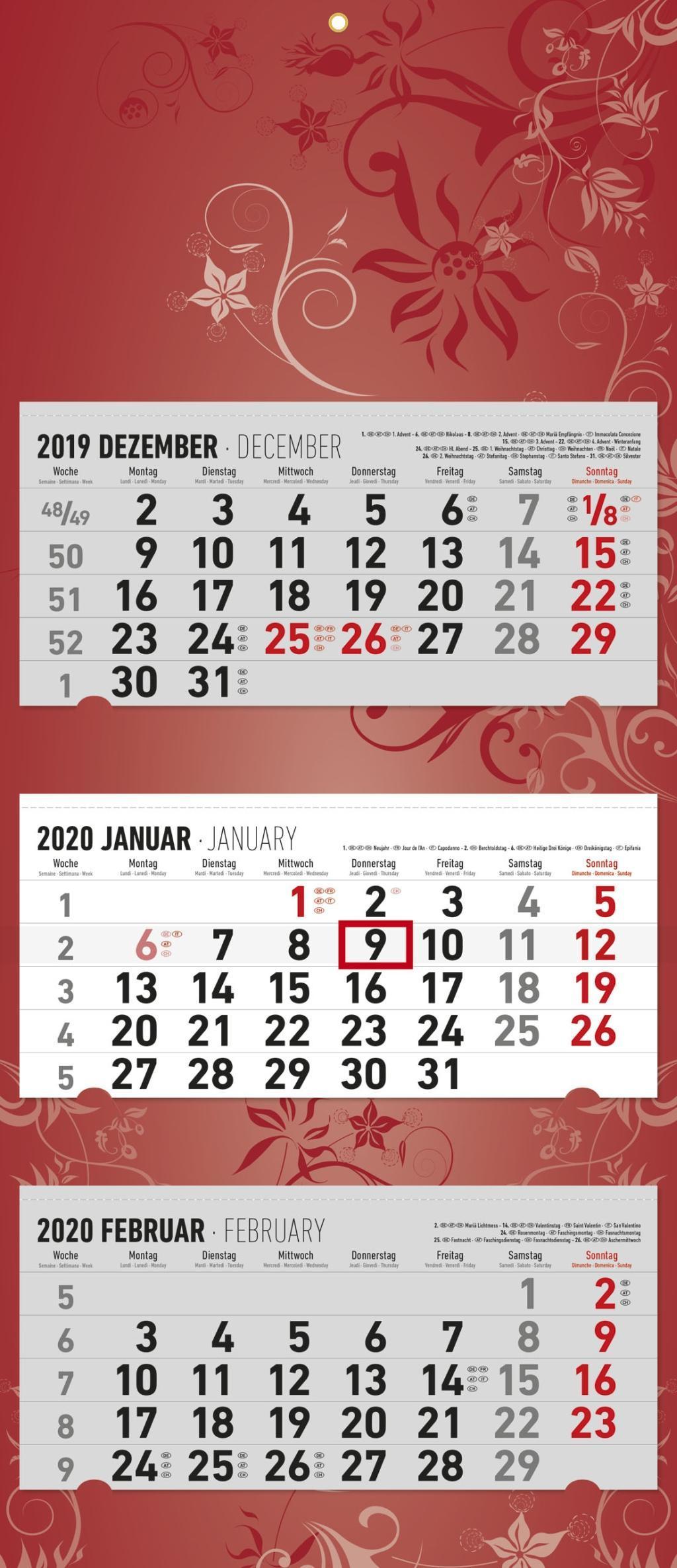 3-Monatskalender 2020 faltbar, Flower-Design (německy)