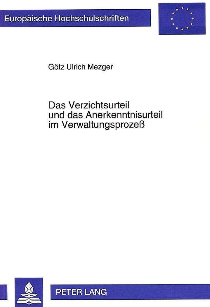Das Verzichtsurteil und das Anerkenntnisurteil im Verwaltungsprozeß (německy)