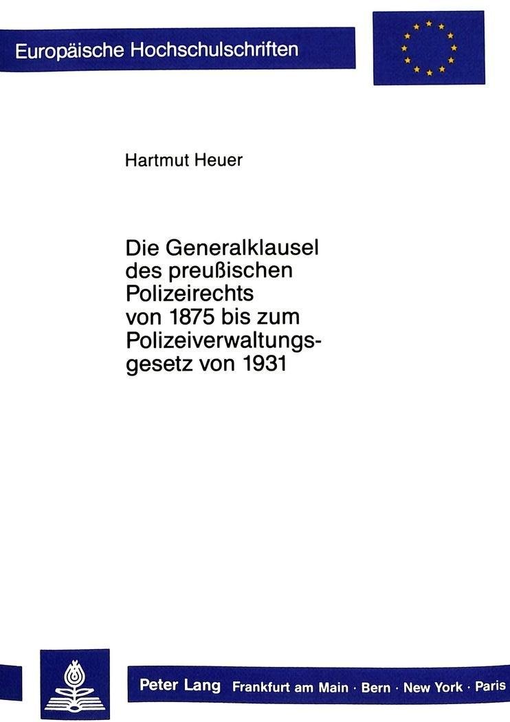 Die Generalklausel des preussischen Polizeirechts von 1875 bis zum Polizeiverwaltungsgesetz von 1931 (německy)