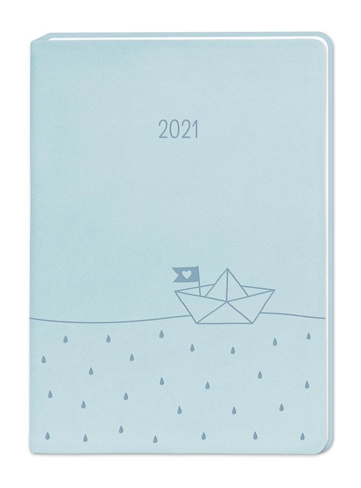 Terminplaner Lederlook A6 Hellblau 2021 (německy)