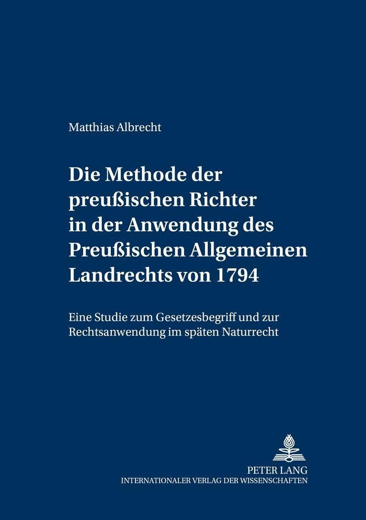 Die Methode der preußischen Richter in der Anwendung des Preußischen Allgemeinen Landrechts von 1794 (německy)