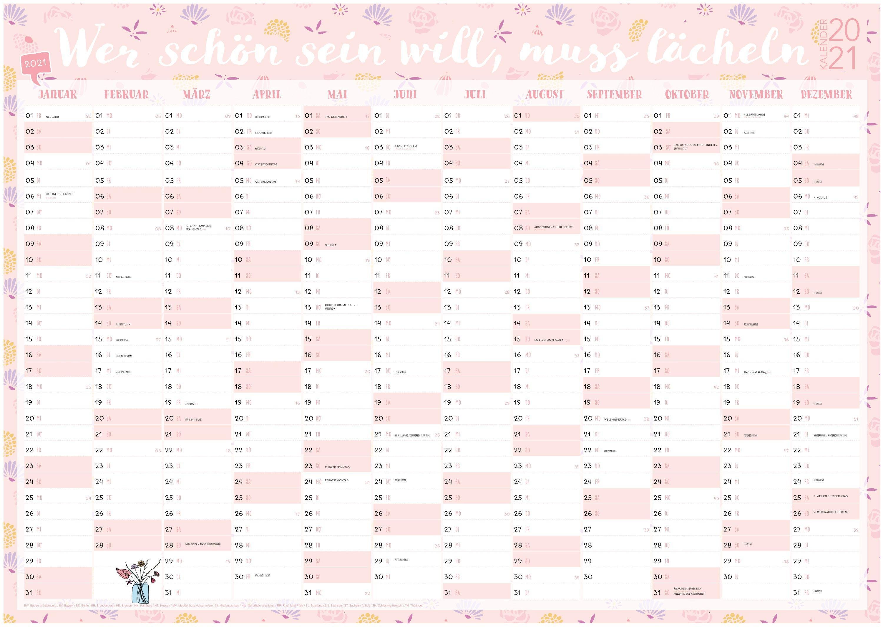 Großer rosa Wandkalender 2021 in DIN A1 (84 x 59,4 cm) für zu Hause oder das Büro. Rosa XXL Wandplaner, Jahreskalender für 12 Mo (německy)