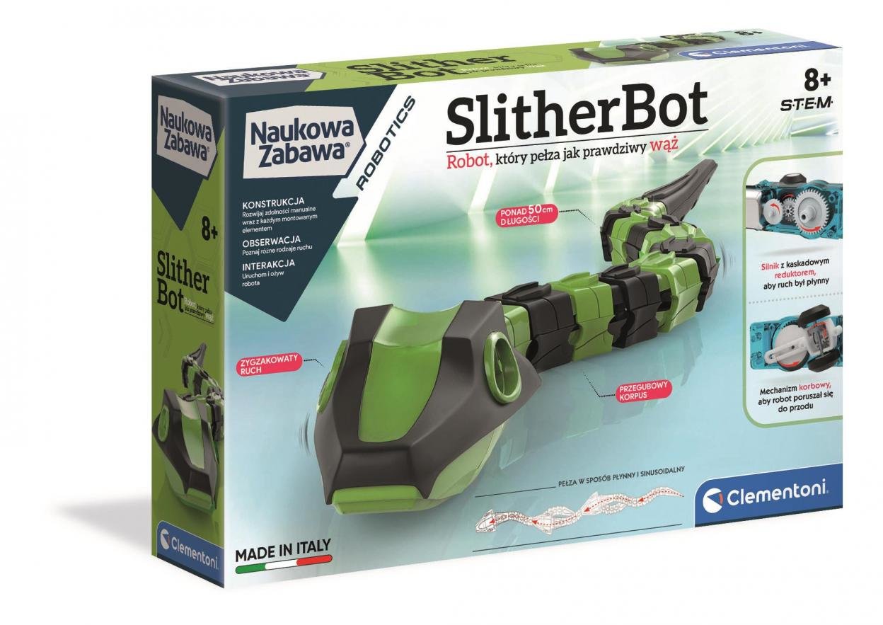 SlitherBot je had dlhý 40 cm zložený z 12 prepojených segmentov, ktoré mu umožňujú plynulý sínusový pohyb podobný skutočnému hadovi. Po zapnutí sa začne pomaly plaziť, vťahujúc sa do úzkych priestorov a rohov, čím vytvára autentický zážitok nielen pre deti, ale aj pre dospelých, ktorí ocenia technológiu a zábavu v jednom.