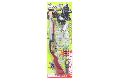 Sada obsahuje pušku, revolver, pouta, hodinky a 3 náboje s přísavkou. Rozměr balení cca 56 x 19 x 3,5 cm. Věk 5+ prečítať celé