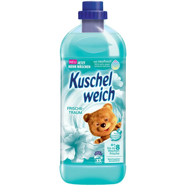Kuschelweich kvalitní aviváž svěží sen - 33 pracích dávek Koncentrovaná aviváž Kuschelweich Frischertraum - svěží sen - je velmi příjemý koncentrovaný avivážní přípravek originálem z Německa. Aviváž s medvídkem má patentovanou technologii pro dlouhodobou vůní na prádle při jeho uložení. Aviváž je...