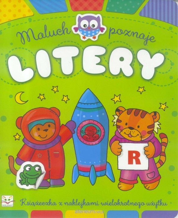 Książeczki na folii z naklejkami wielokrotnego użytku. Dziecko poznaje 24 litery, ale pisze tylko kilka z nich: A, T, O, M, L, K, przykleja naklejki pasujące do wskazanej litery oraz rysuje szlaczki po liniach przerywanych (nieudaną linię można zetrzeć i narysować jeszcze raz). Za poprawnie wykonane zadanie czeka nagroda w postaci naklejki z napisem Brawo!.
