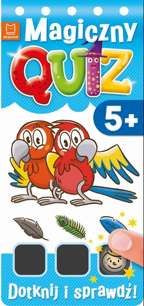 Magiczny quiz. Dotknij i sprawdźMagiczny quiz to świetna zabawa i sposób sprawdzenia wiedzy dziecka! Aby wskazać odpowiedź, należy przyłożyć palec lub delikatnie potrzeć pokryty farbą termiczną kwadracik – pod wpływem ciepła pojawi się znaczek poprawnej lub błędnej odpowiedzi. W książce zamieszczonych jest 76 pytań obrazkowych wraz z odpowiedziami. Quiz to pomysł na udany prezent i interesującą naukę.
