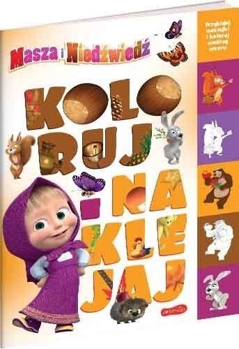 Masza i Niedźwiedź. Koloruj i naklejaj (polsky)