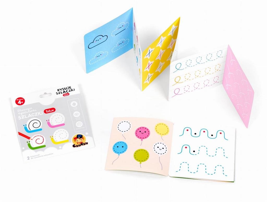 W dłuuugich książeczkach harmonijkach znajdziecie 23 ilustracje pełne prostych obrazków, które inspirują do rysowania szlaczków. To naturalny wstęp do przyszłej nauki pisania oraz trening uważności, koncentracji i cierpliwości.