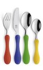 Táto farebná sada obsahuje všetko, čo potrebujete na stolovanie - kuchynský nôž a vidličku, lyžicu a čajovú lyžičku, takže pohodlne zvládnete celé jedlo. Materiál z nehrdzavejúcej ocele zaručuje dlhú životnosť príboru a jednoduchú údržbu, zatiaľ čo plastové rúčky v rôznych veselých farbách (žltá, zelená, modrá, červená) priťahujú detskú pozornosť a zvyšujú chuť do jedla.