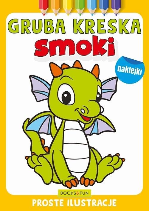 GRUBA KRESKA to kolekcja kolorowanek z prostymi rysunkami skierowana głównie do najmłodszych dzieci. Gruby obrys ułatwi kolorowanie i zapewni świetną zabawę. Nasza seria została przygotowana tak, aby ułatwić dzieciom ćwiczenie ręki. W środku czeka na nie niespodzianka naklejki, które podpowiedzą maluchom, jakich mogą używać kolorów.